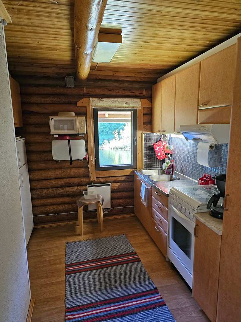 | Keittiön materiaalit | Lattia: Lauta Seinät: Hirsi |