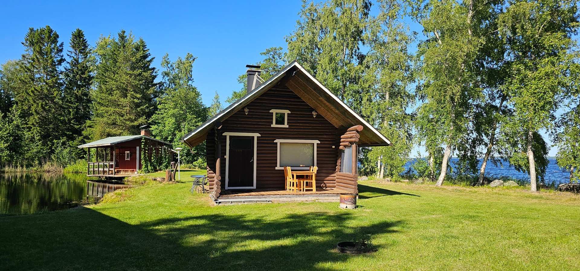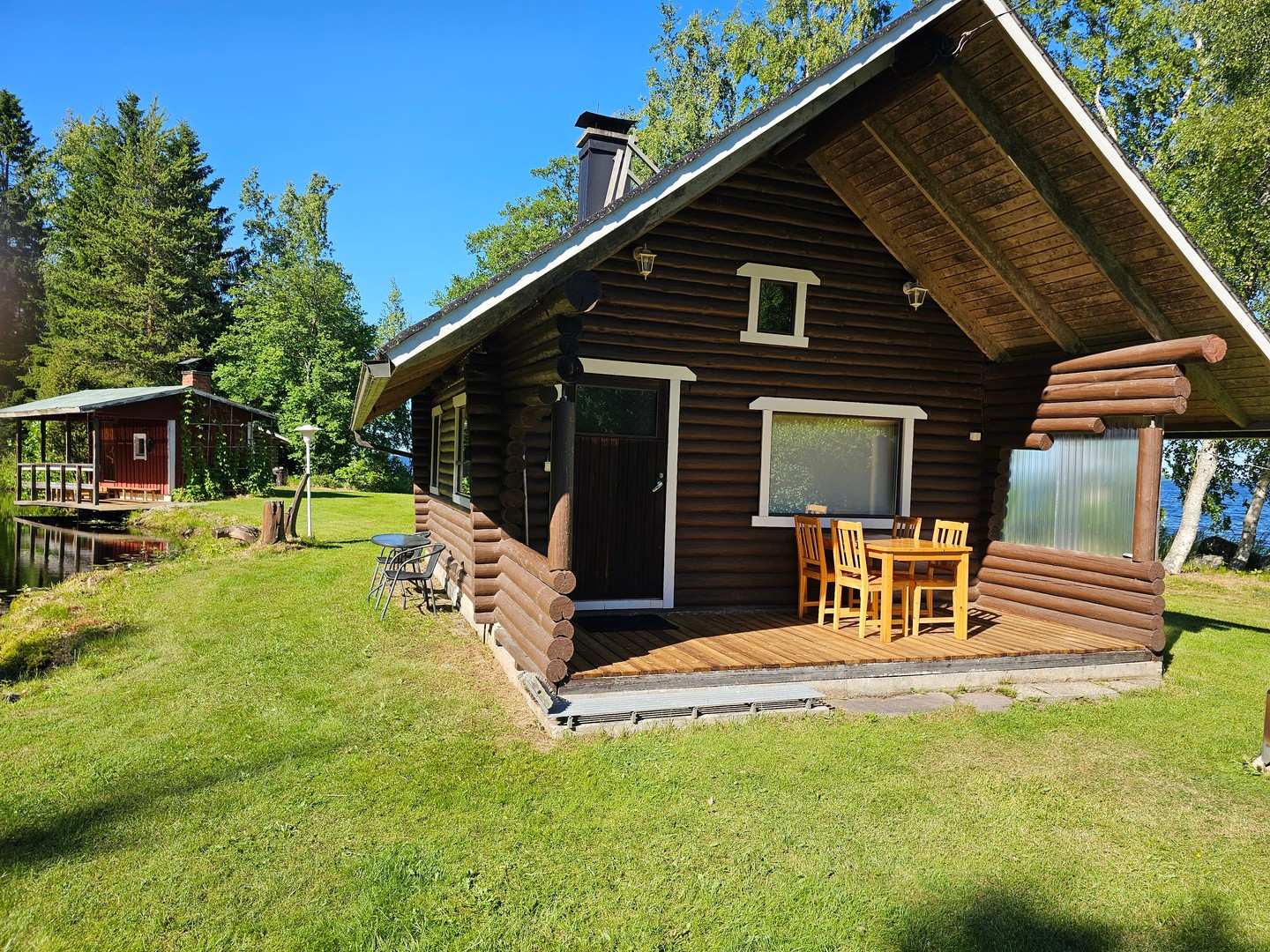 | Makuuhuone | Päämökissä parvi, talousrakennuksessa vierashuone |