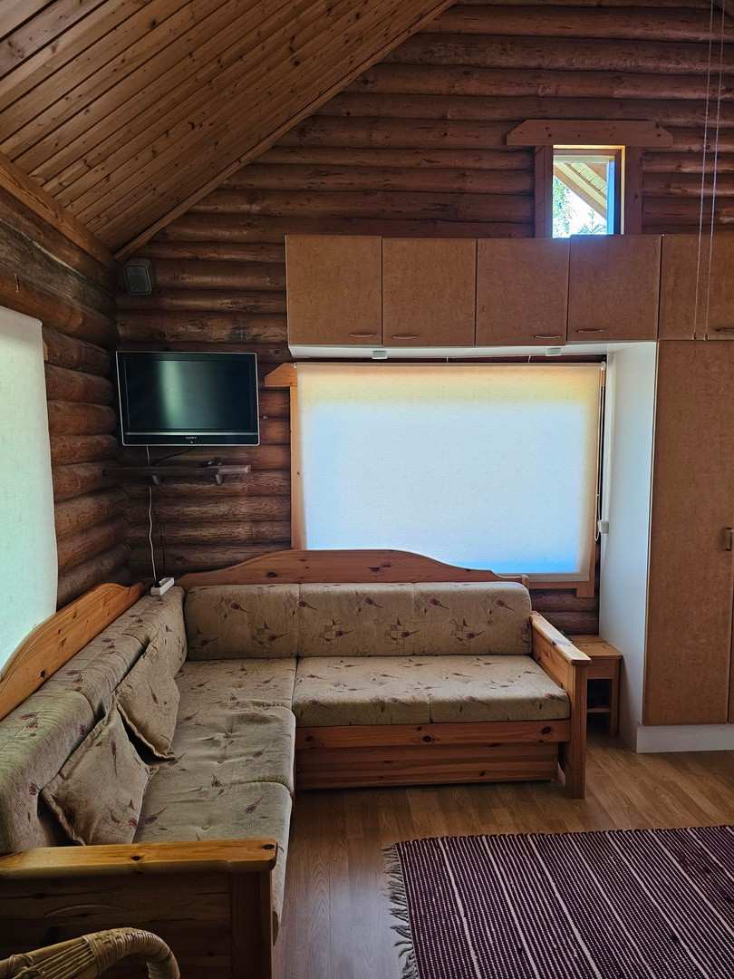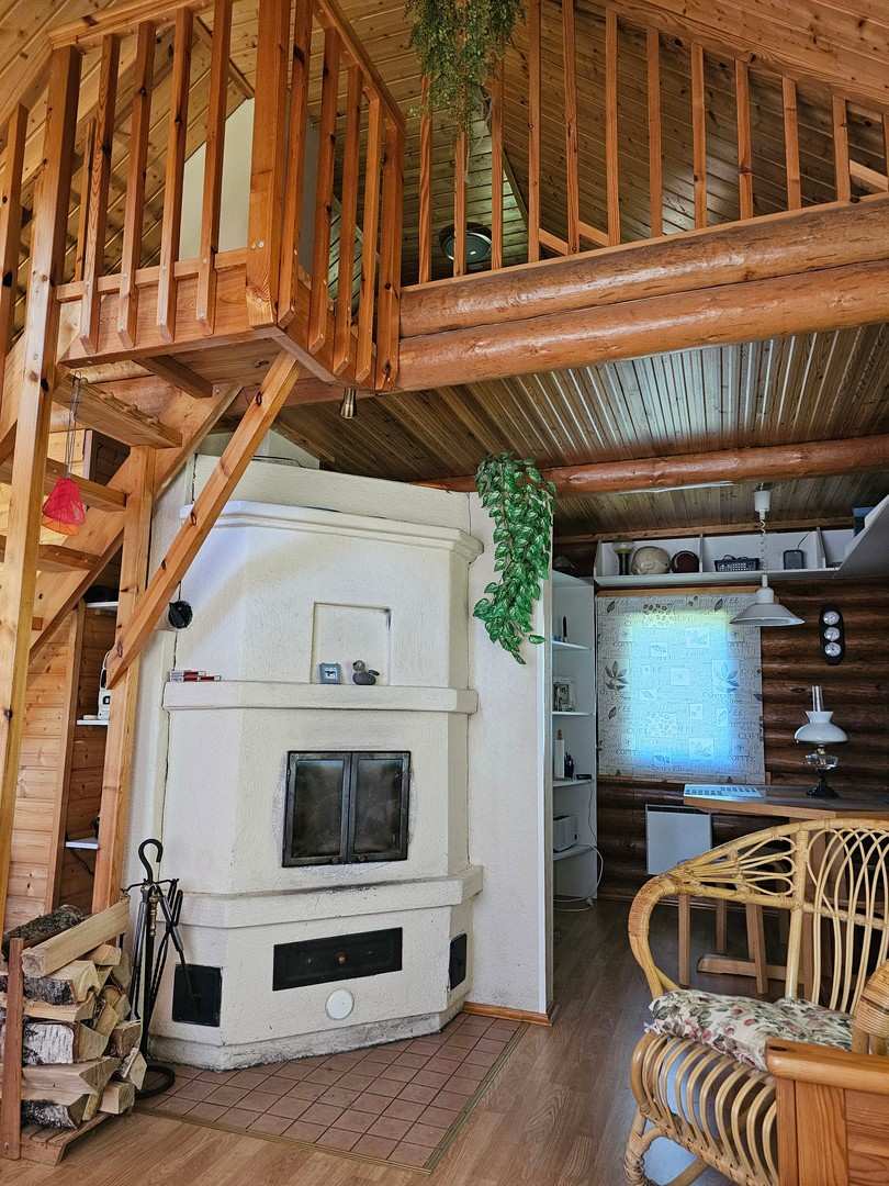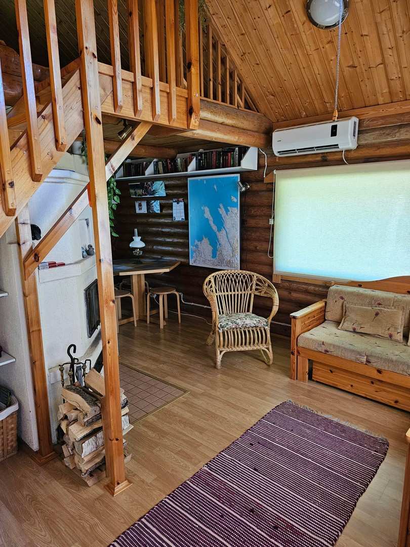 | Olohuoneen materiaalit | Lattia: Lauta Seinät: Hirsi |