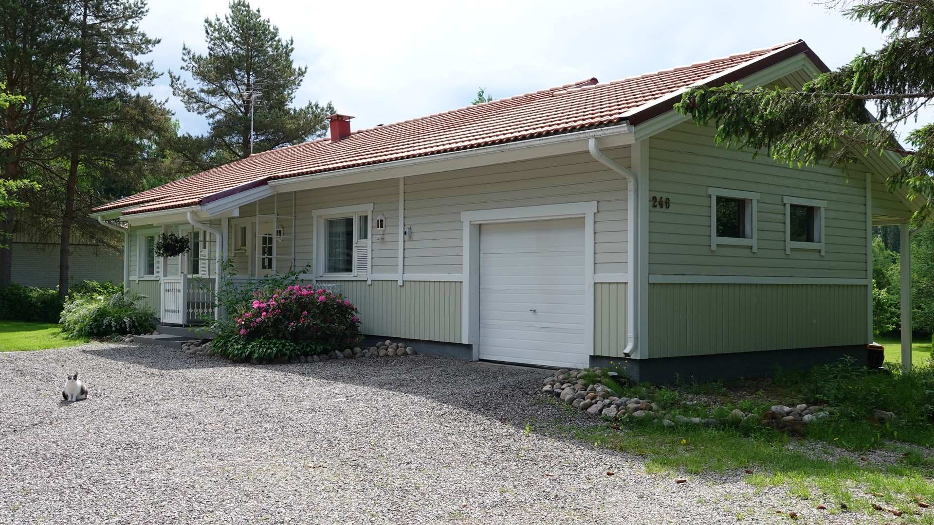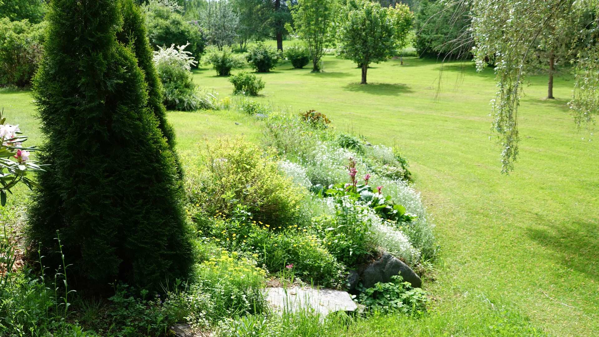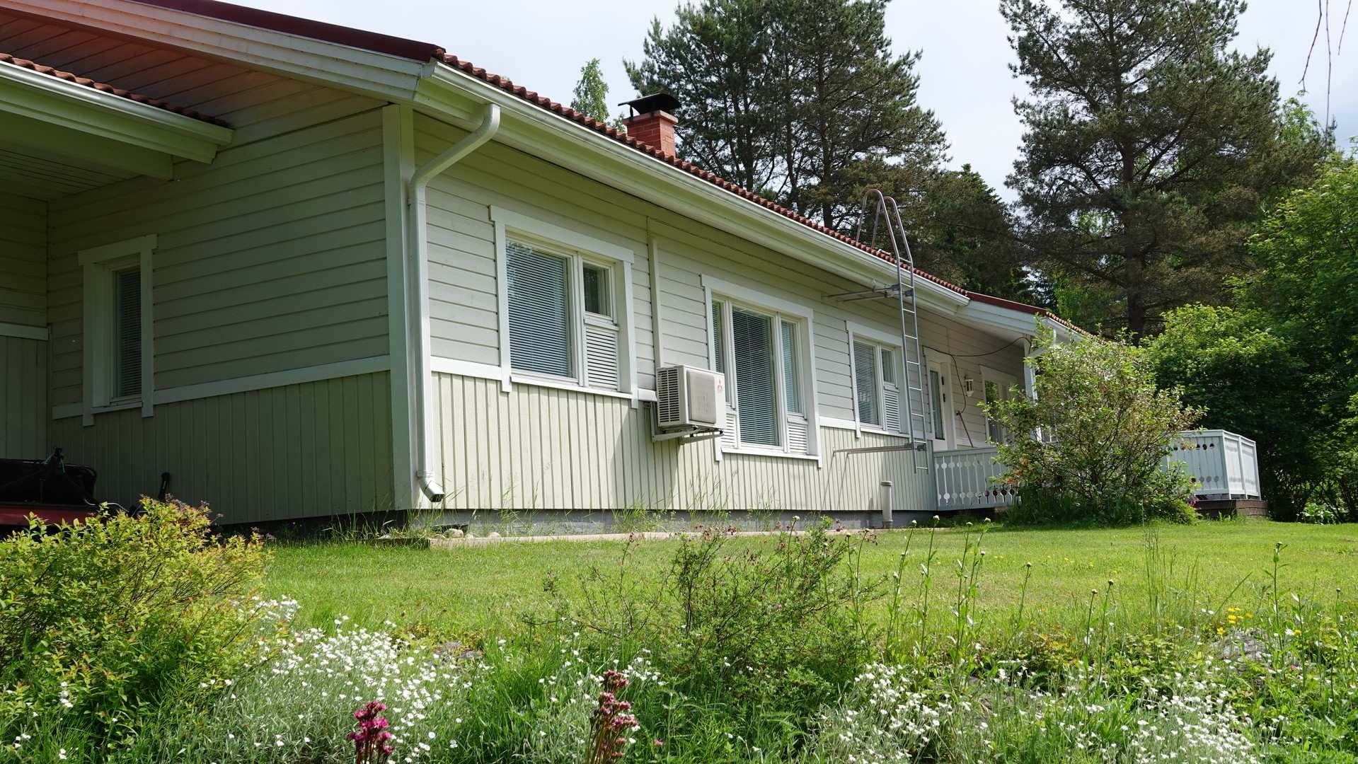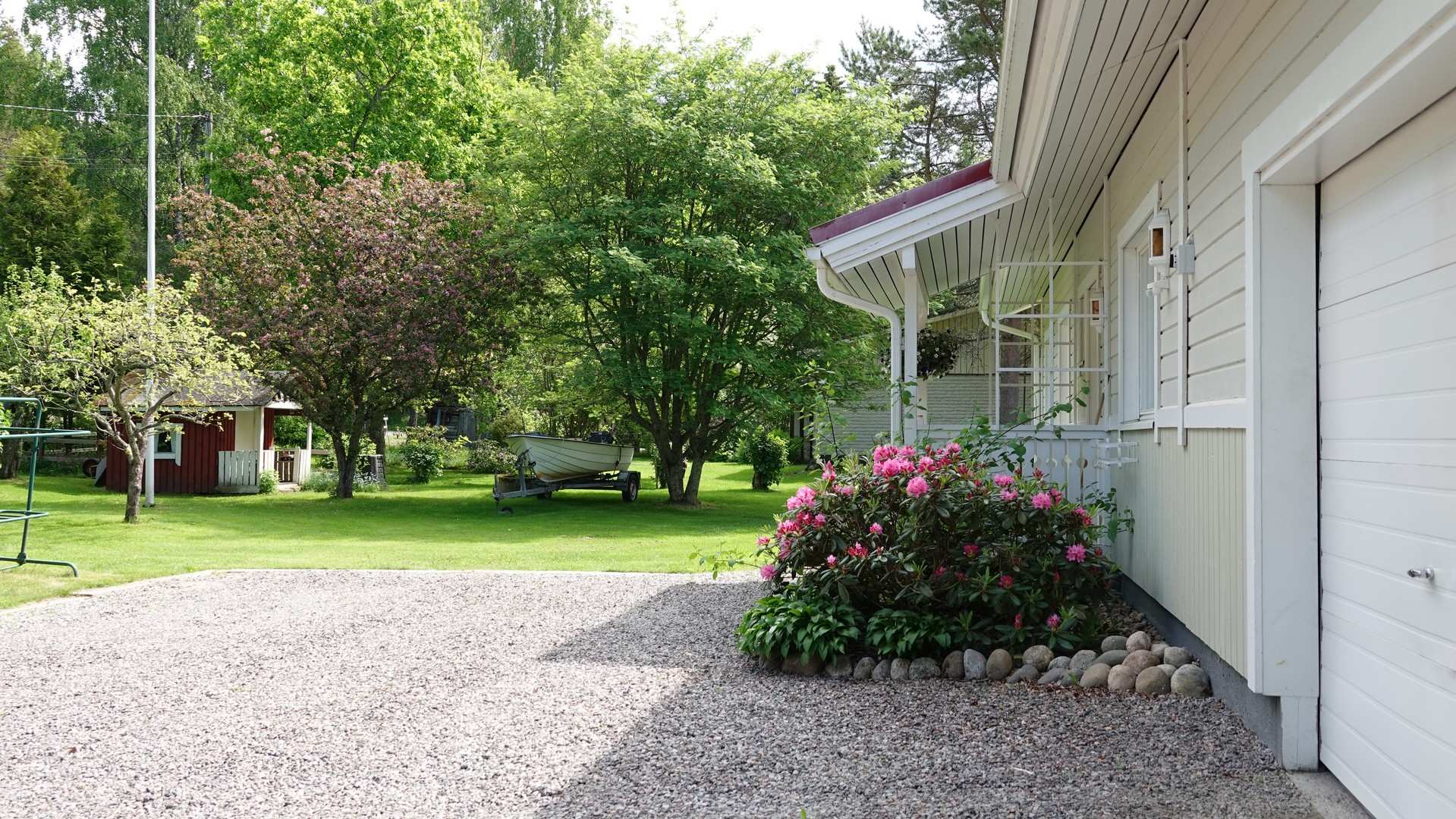 Tilavalla 2768 m²:n tontilla on iso ja kaunis piha, joka tarjoaa runsaasti tilaa ulkoilulle ja vapaa-ajan viettoon. Terassilta, jossa on sähköinen markiisi, voit nauttia kesäpäivistä suojassa auringolta.