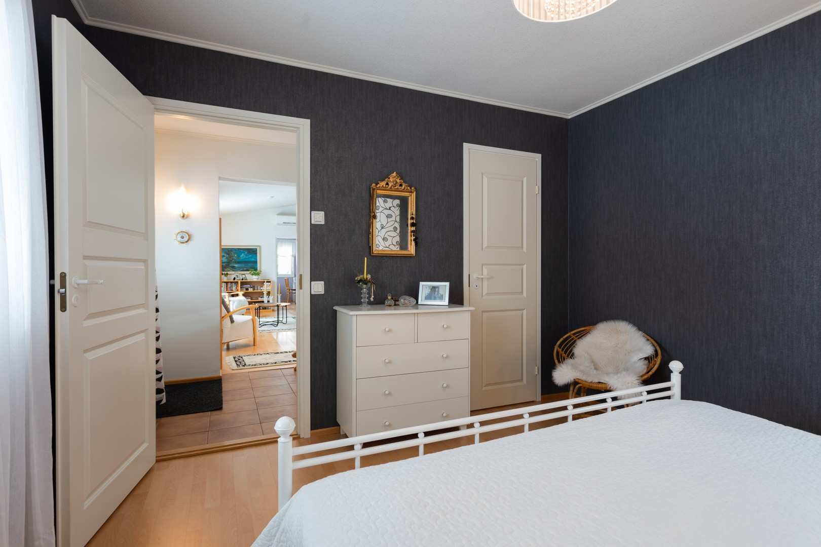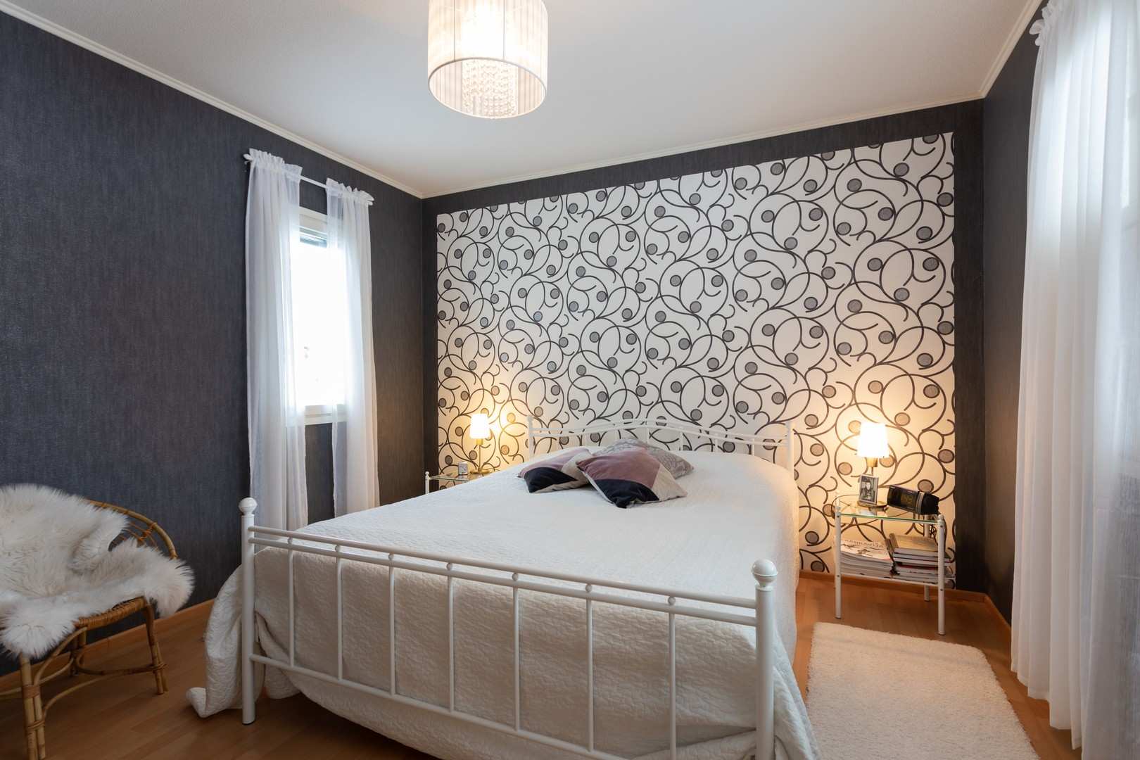 | Makuuhuoneen materiaalit | Lattia: Parketti ja muovimatto Seinät: Tapetti |