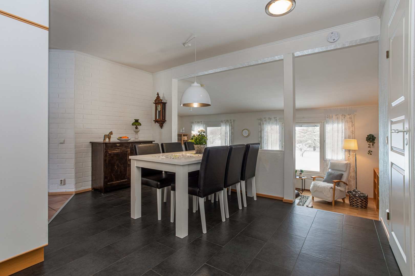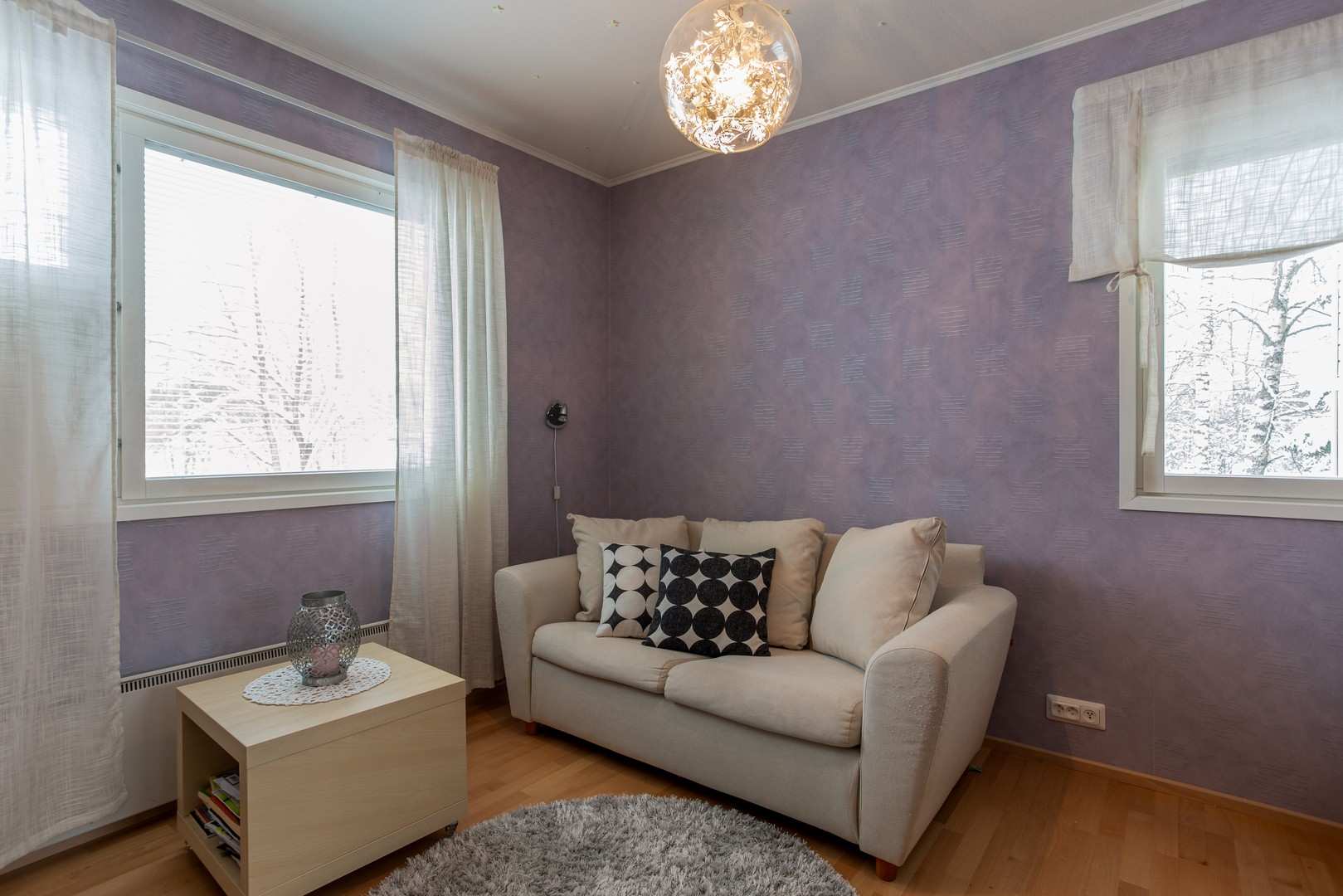 | Olohuoneen materiaalit | Lattia: Parketti Seinät: Tapetti |
