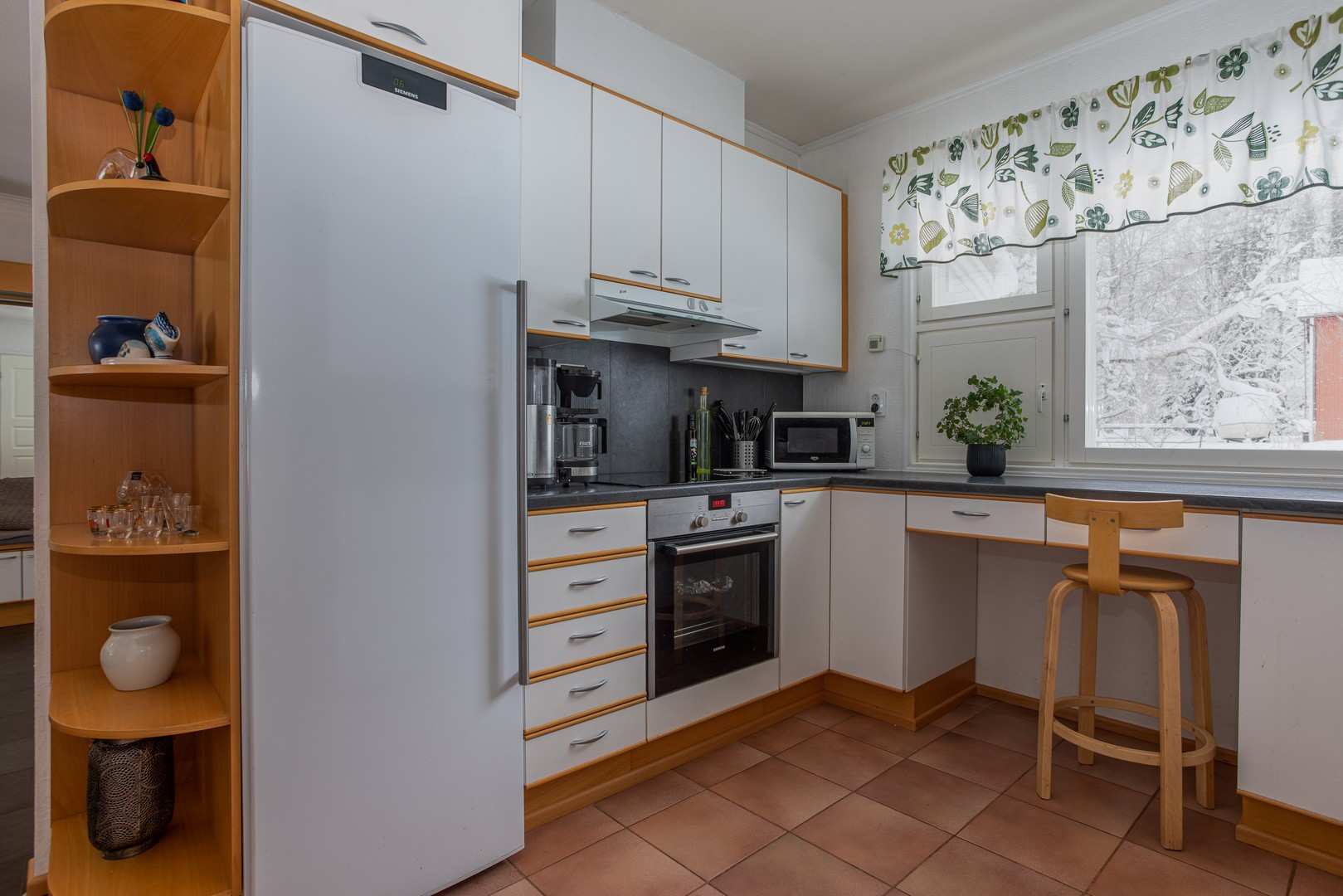 | Keittiön varusteet | Jääkaappi, erillinen pakastin, erillisuuni, liesi, astianpesukone ja liesituuletin |