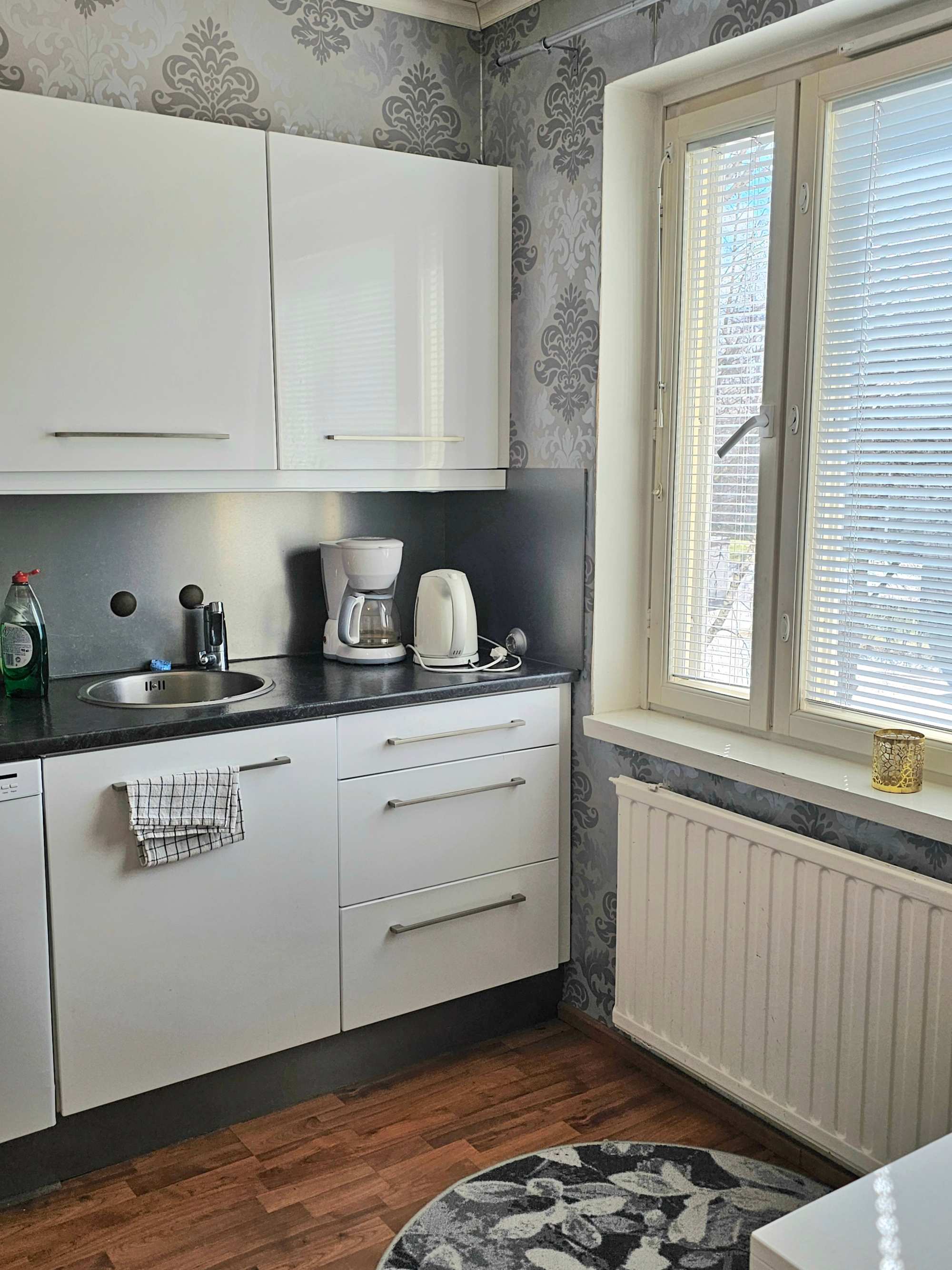 | Keittiön materiaalit | Lattia: Laminaatti Seinät: Maali ja tapetti |