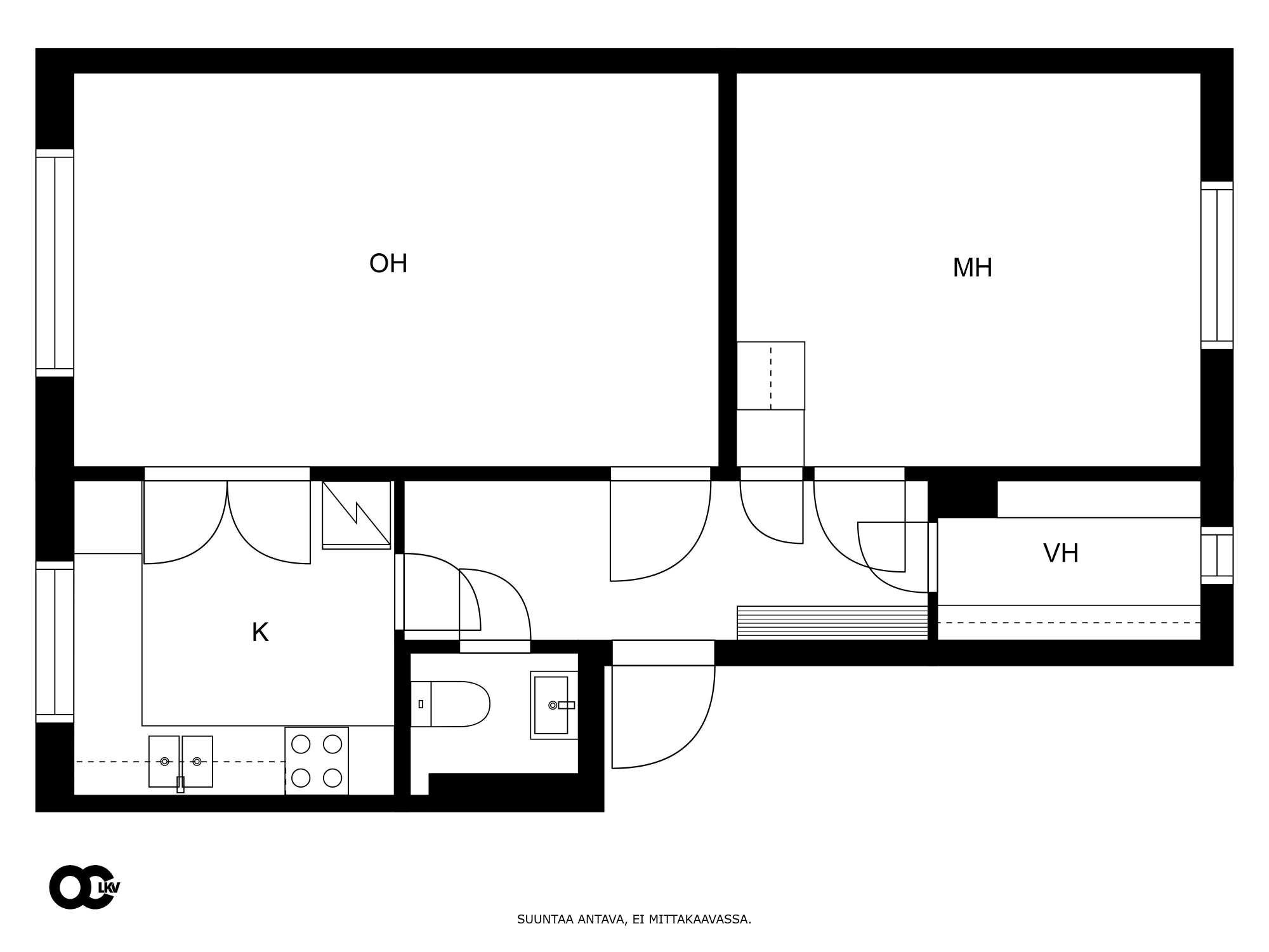 | Keittiön varusteet | Jääkaappipakastin, liesituuletin ja astianpesukone |