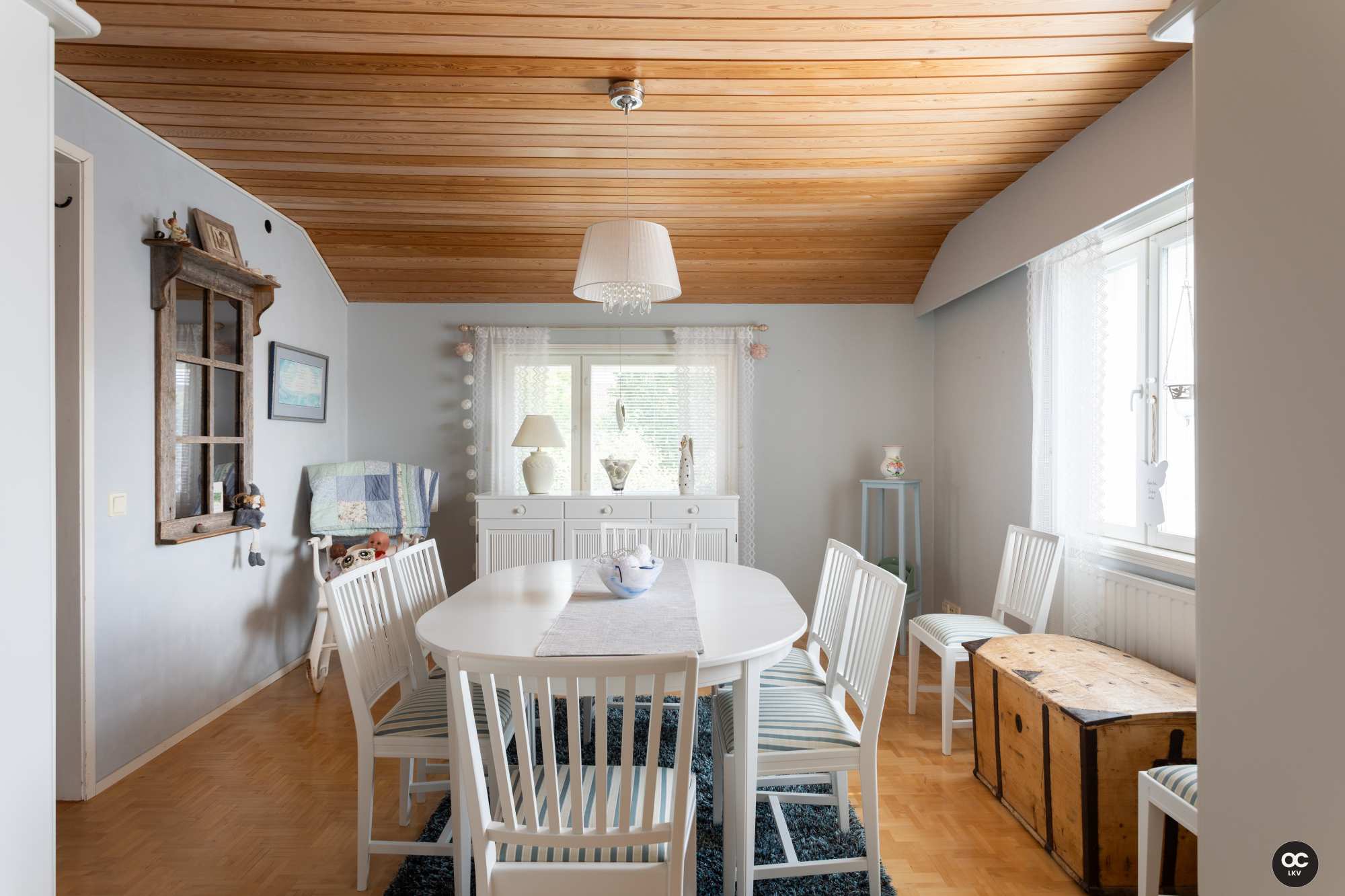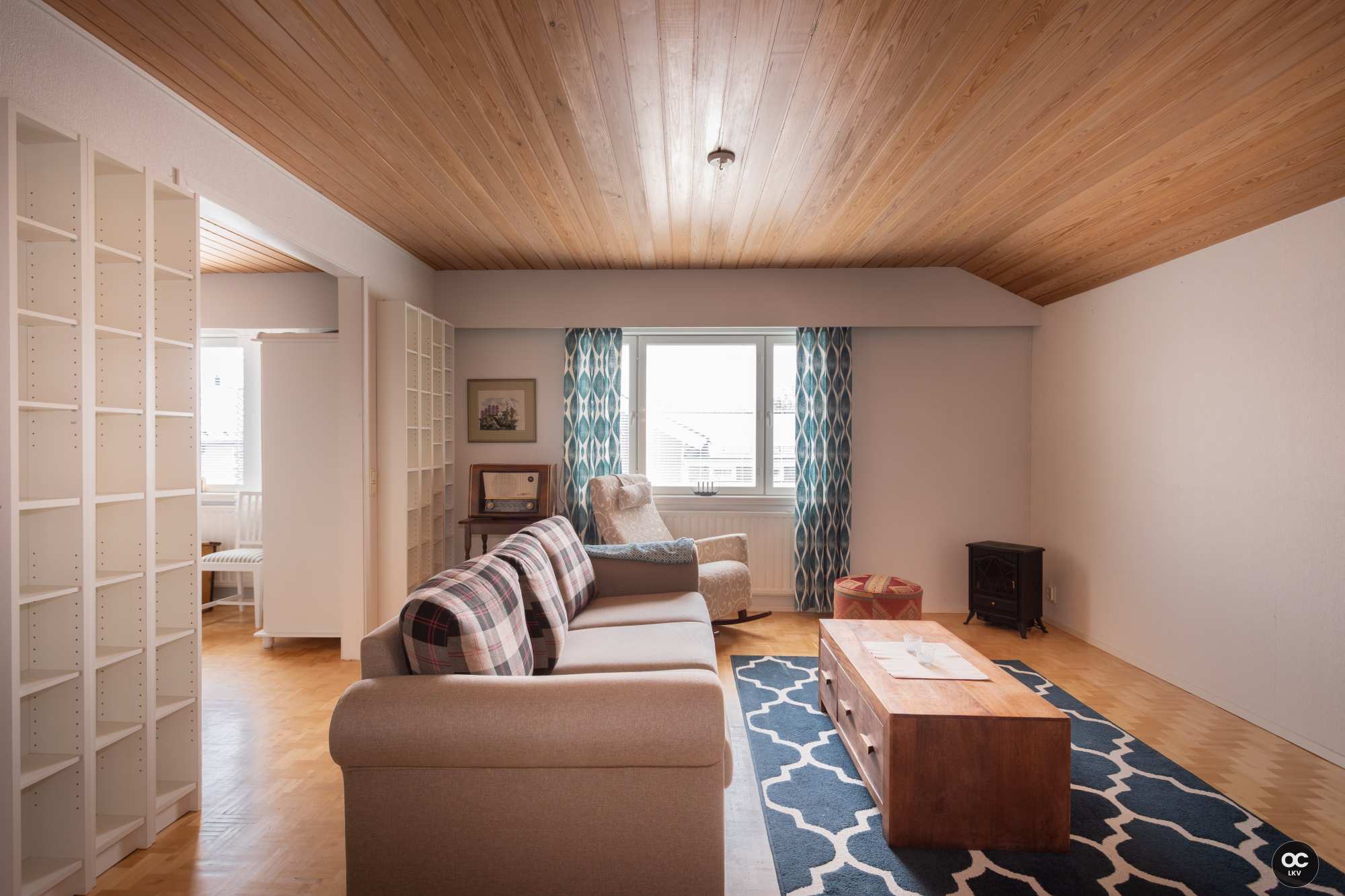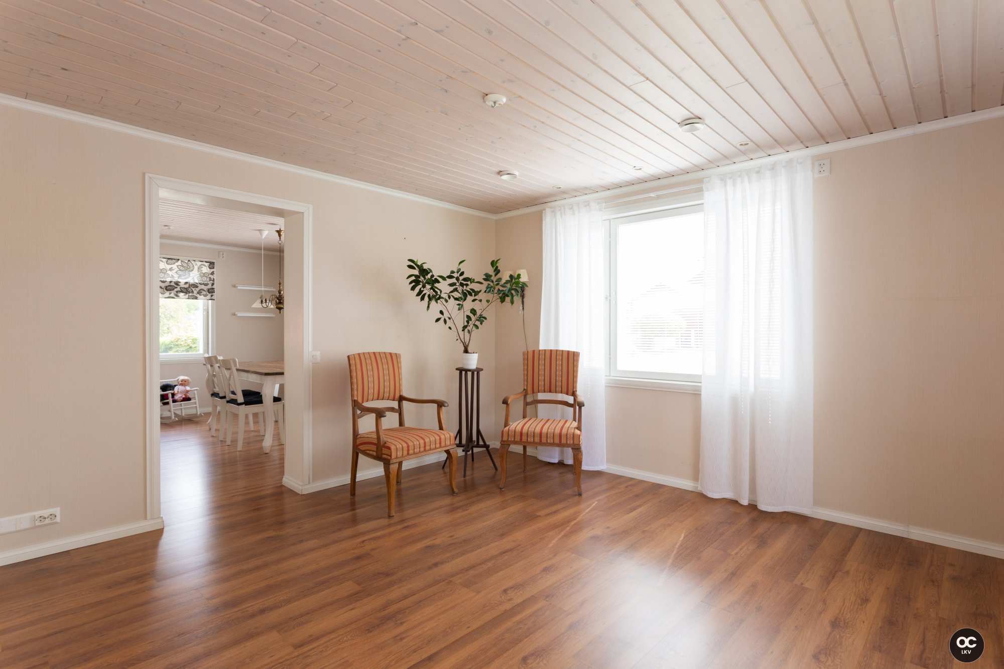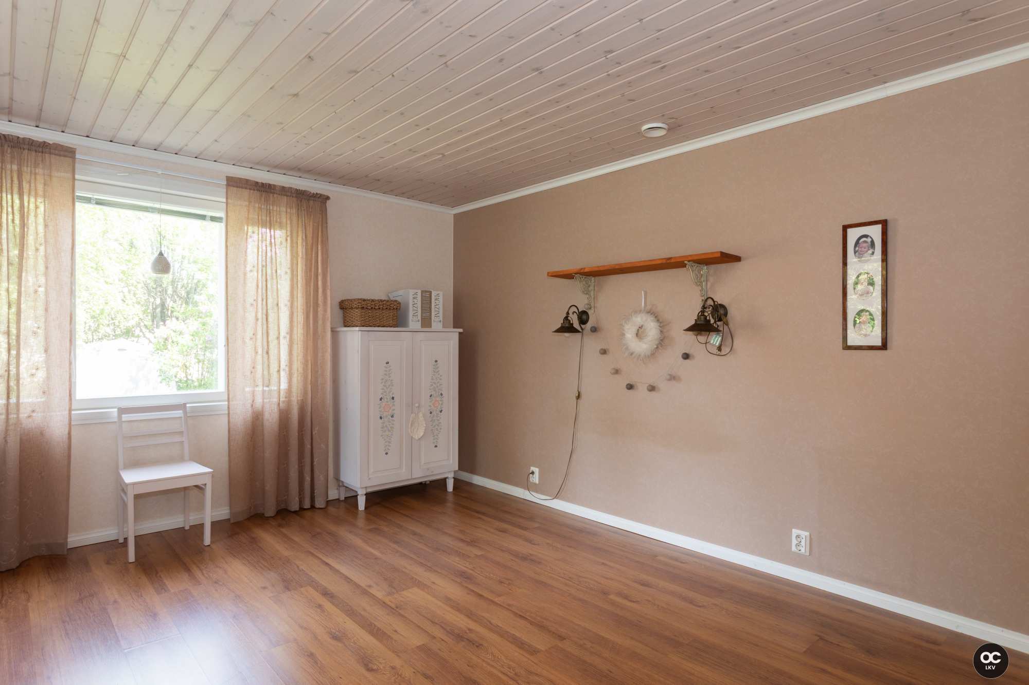 | Olohuoneen materiaalit | Lattia: Laminaatti Seinät: Tapetti |