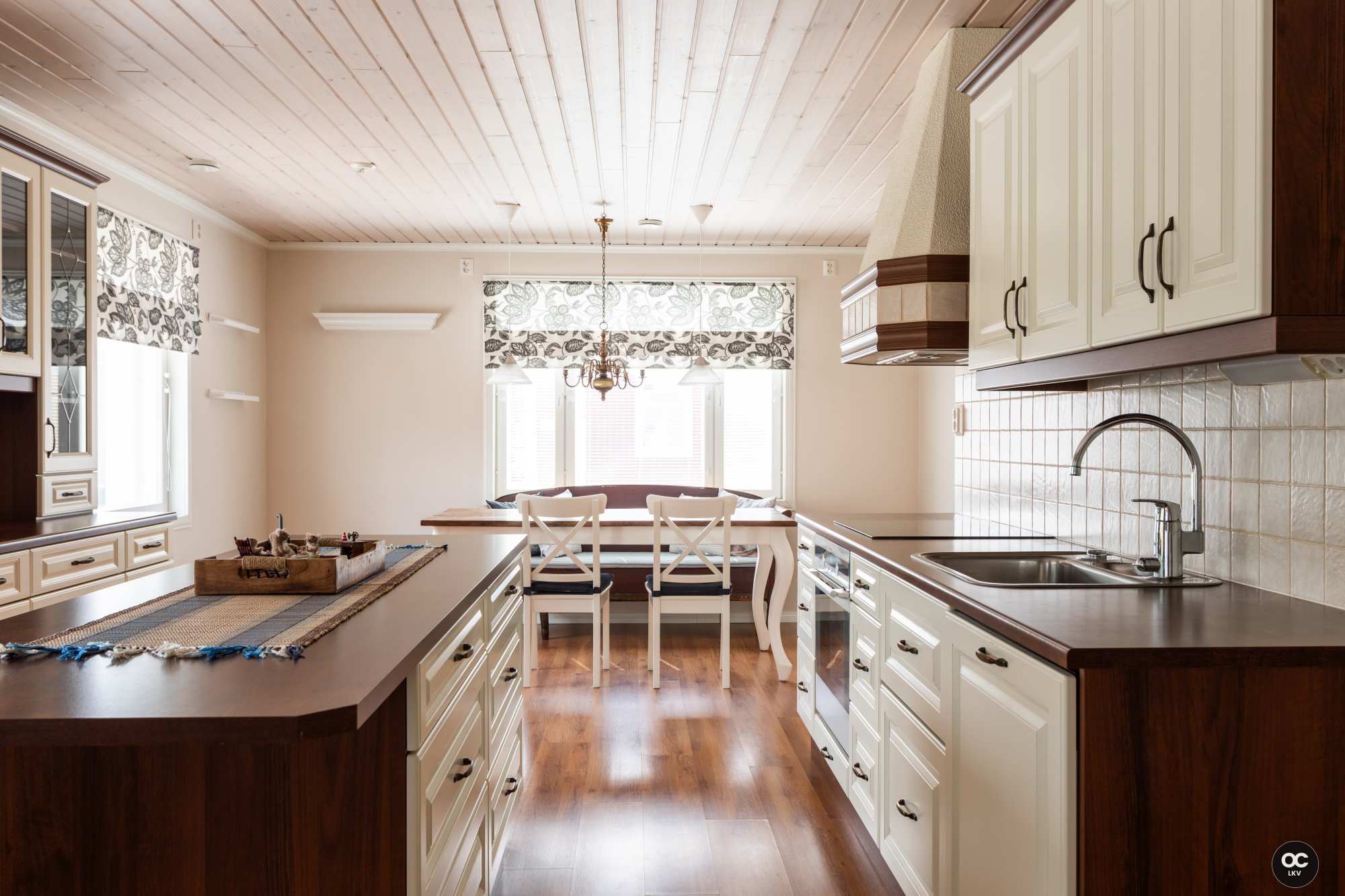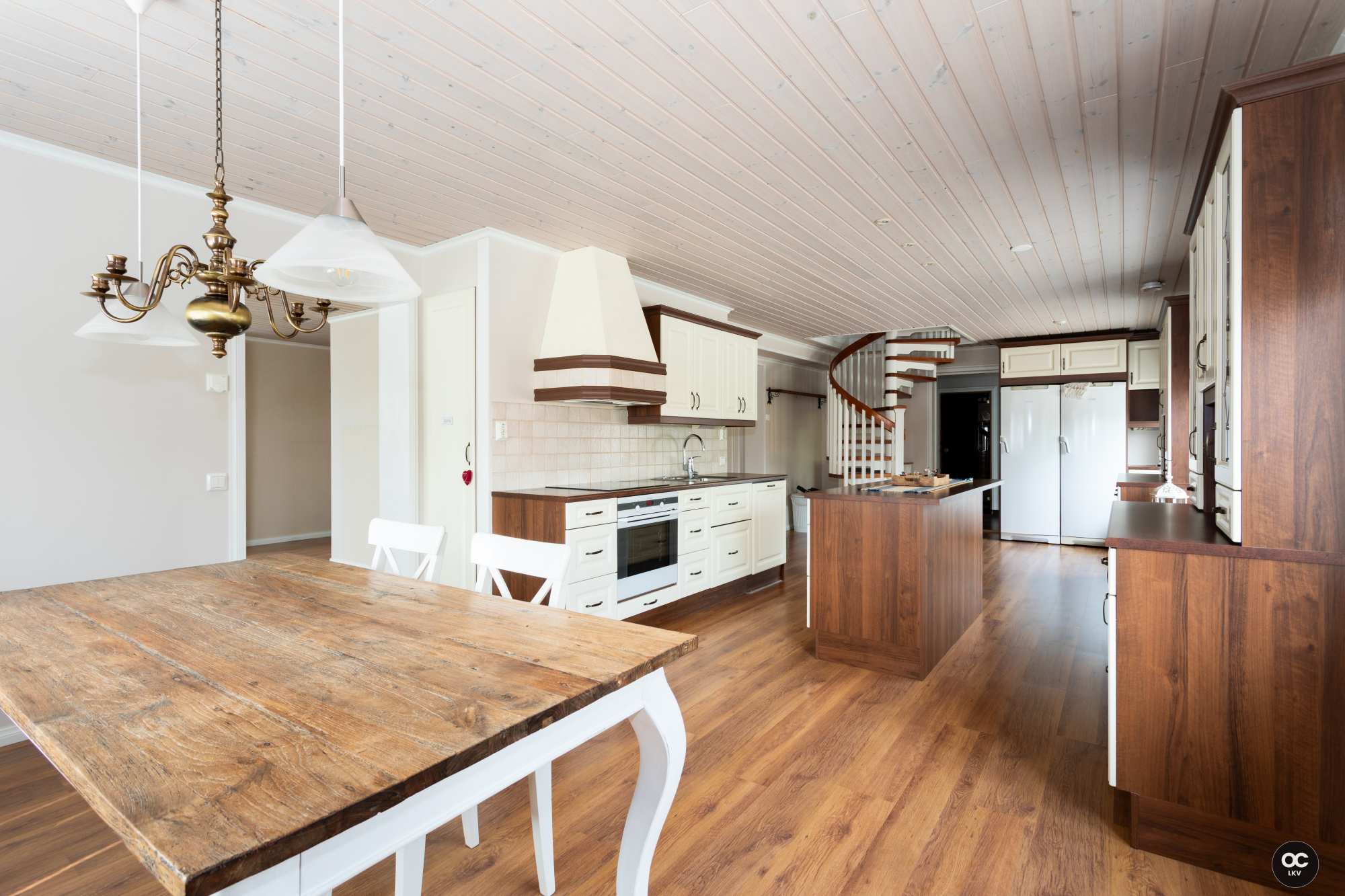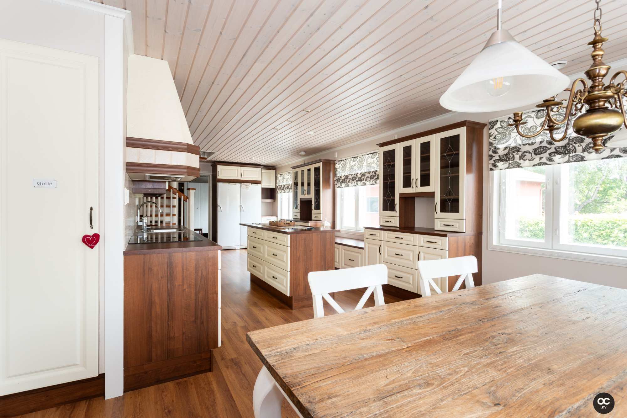 | Keittiön varusteet | Jääkaappi, erillinen pakastin, liesituuletin, keittiösaareke, astianpesukone, erillisuuni ja liesi |