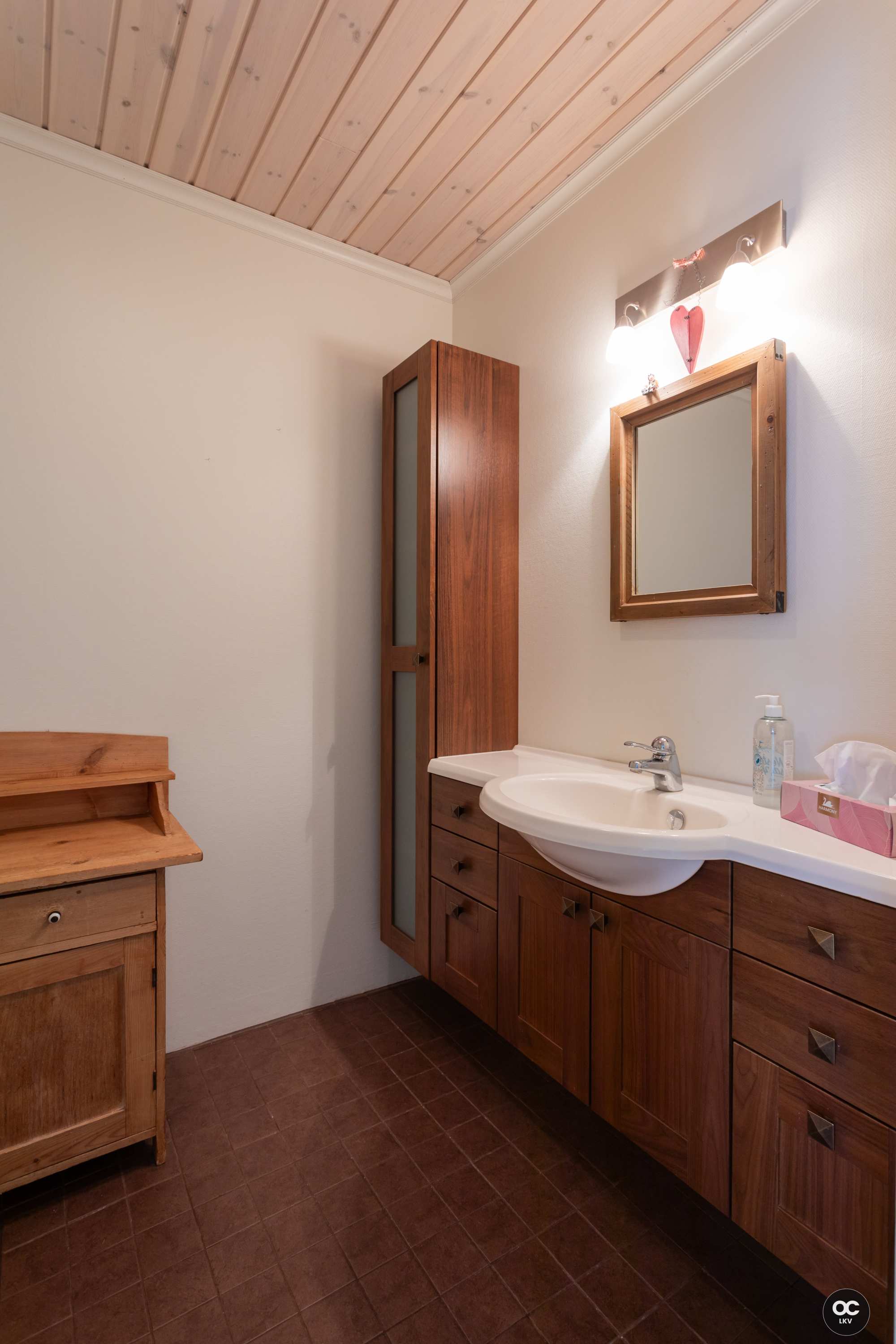 | Kylpyhuoneen materiaalit | Lattia: Muovimatto Seinät: Kaakeli |