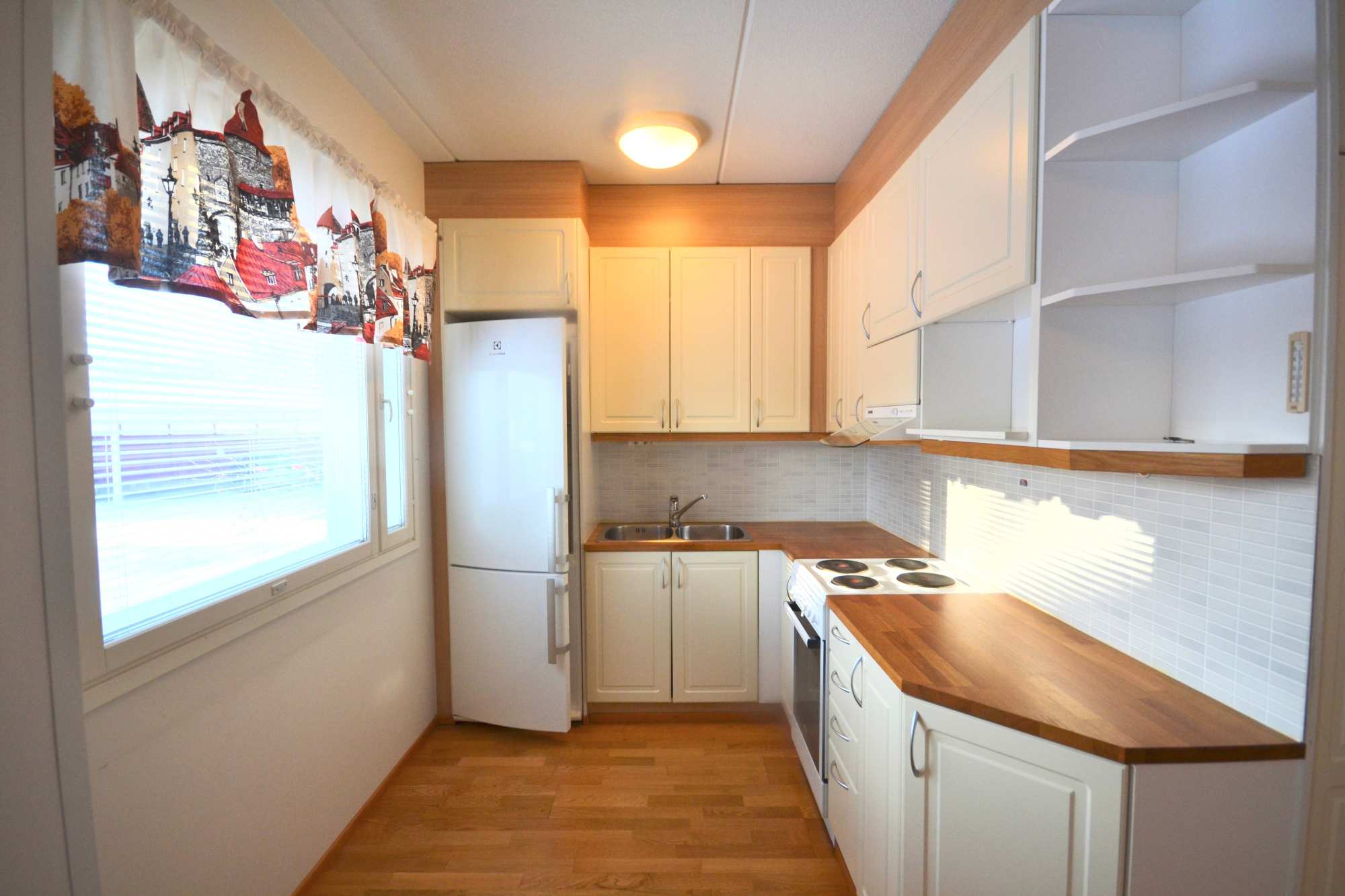 | Keittiön materiaalit | Lattia: Parketti Seinät: Tapetti |