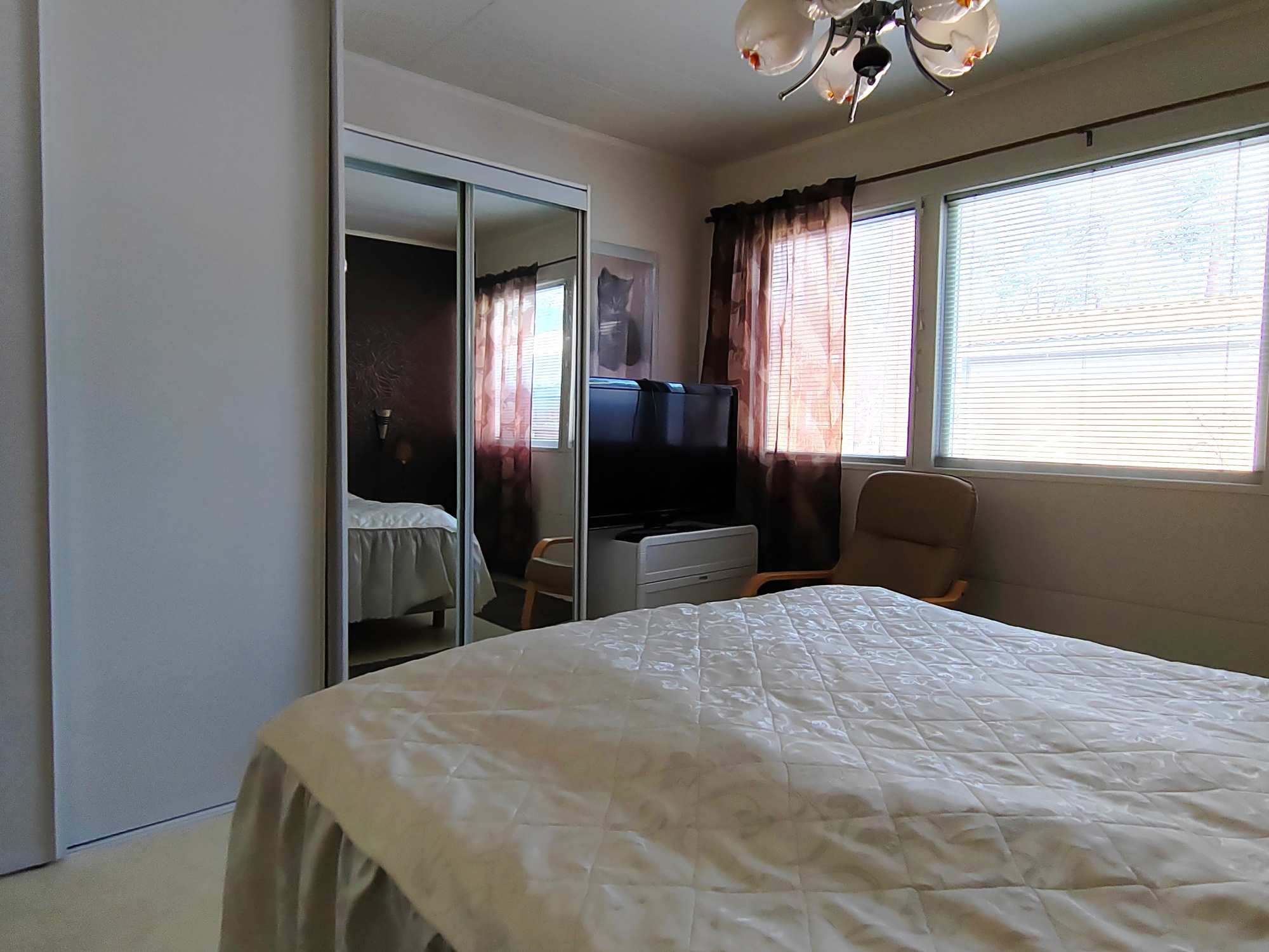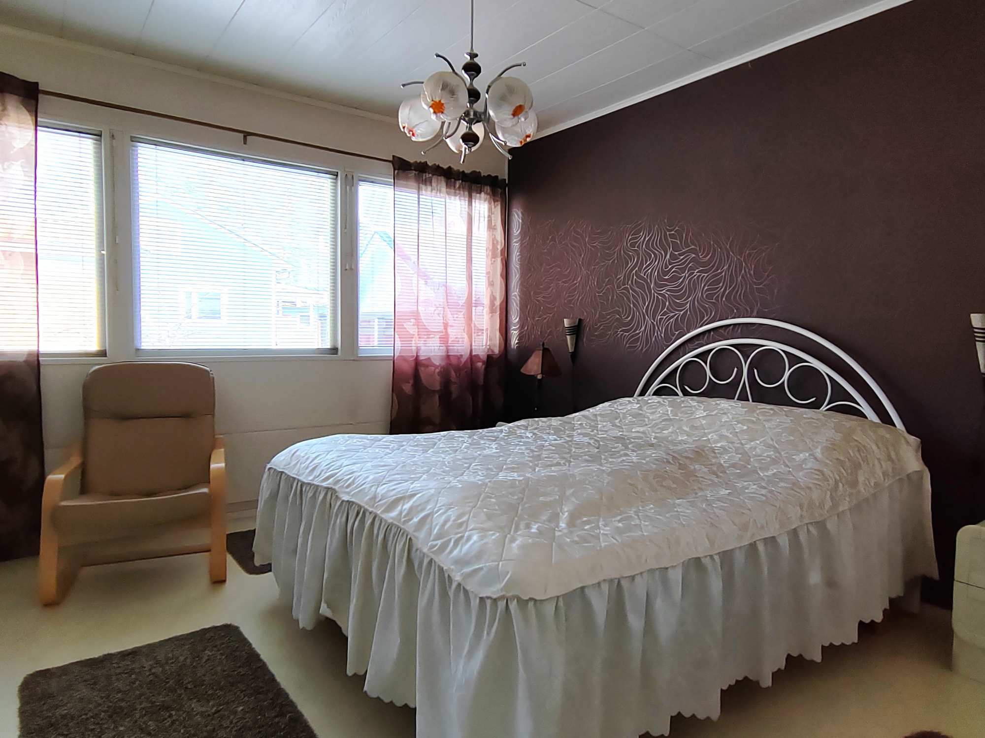 | Makuuhuoneen materiaalit | Lattia: Muovimatto Seinät: Tapetti ja maali |