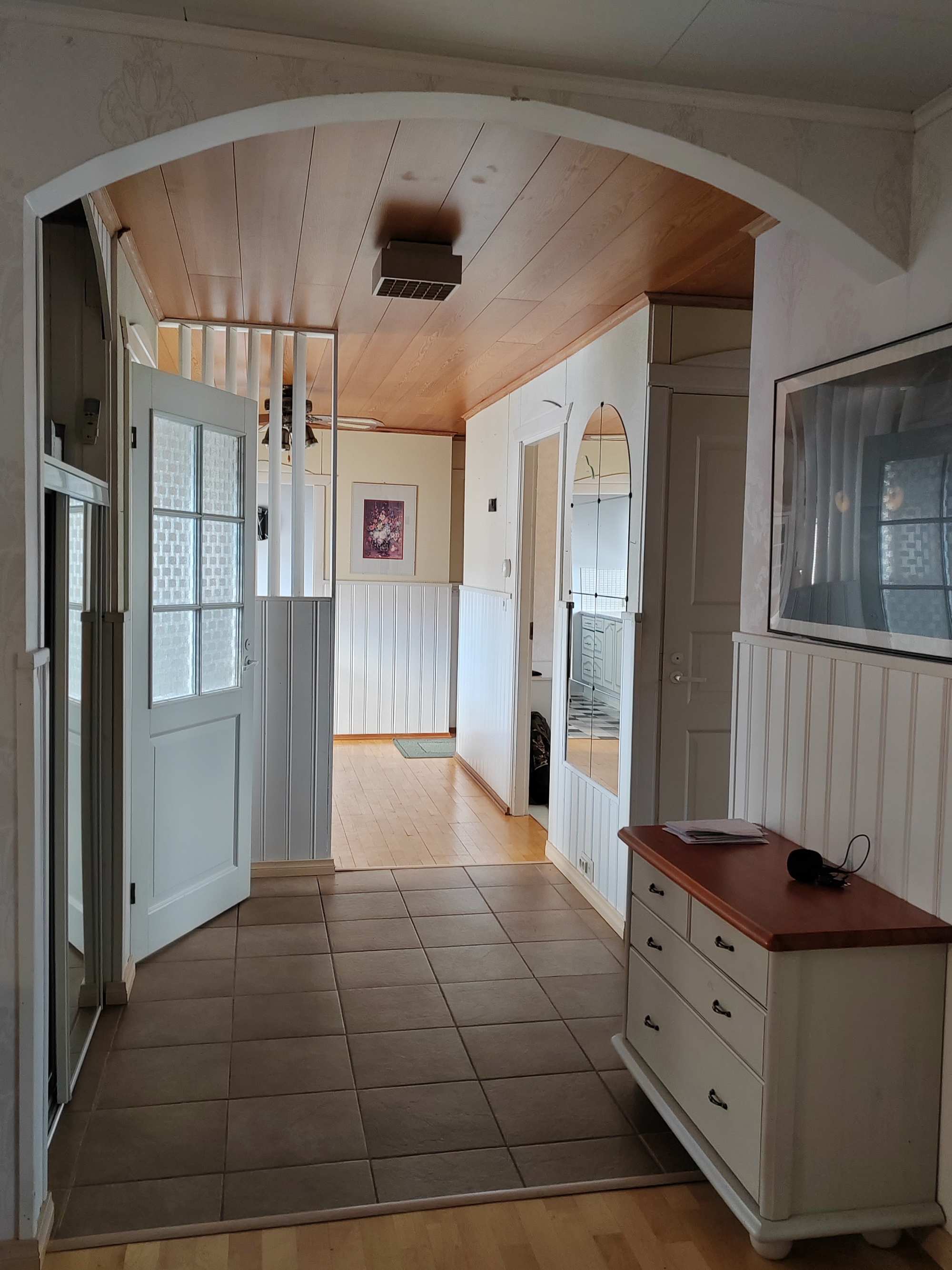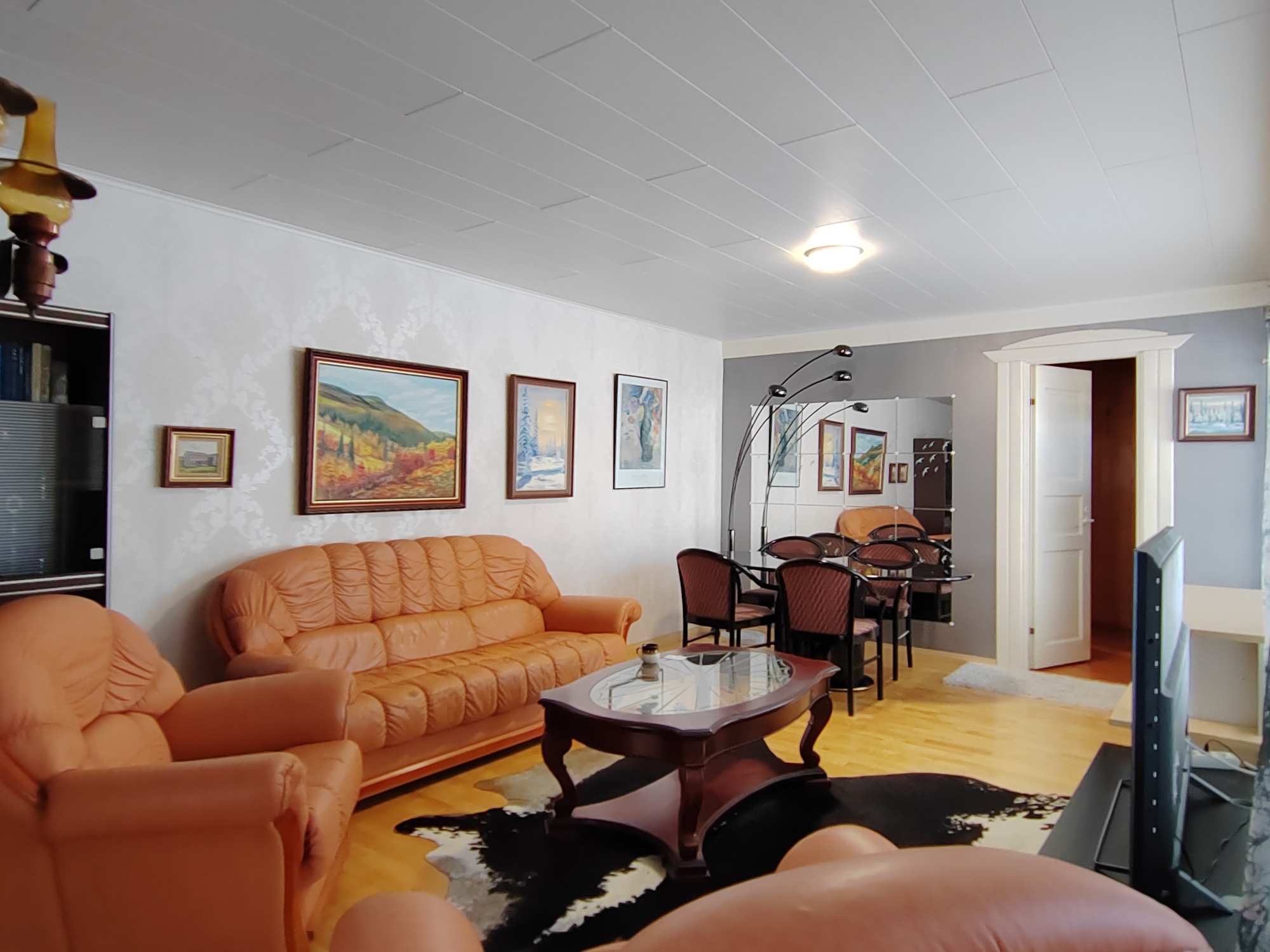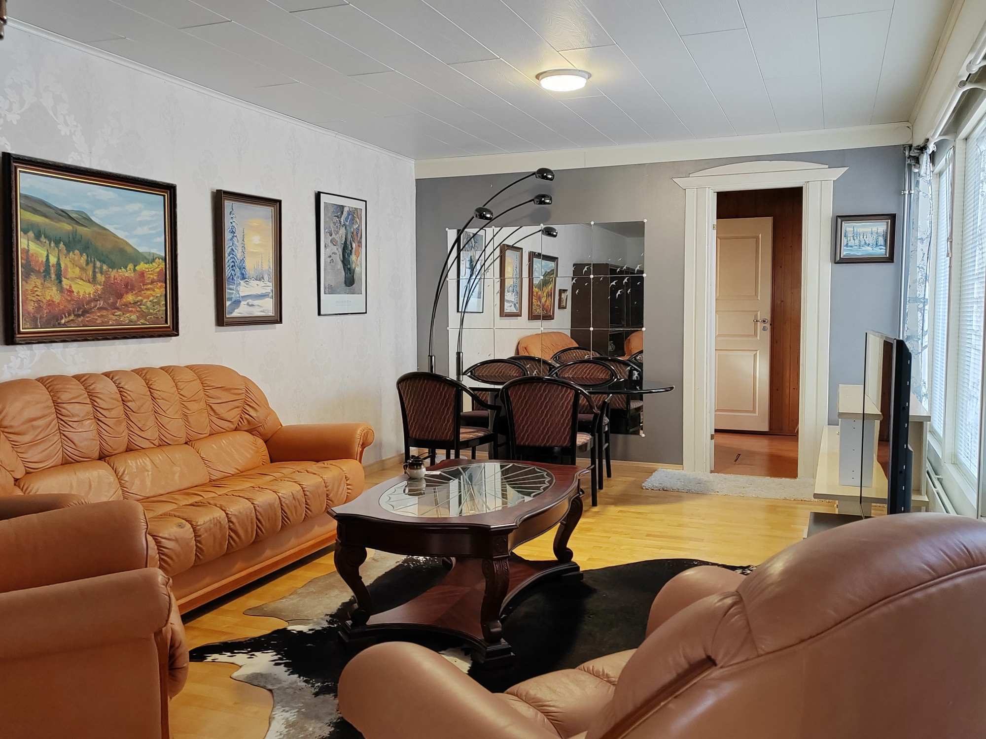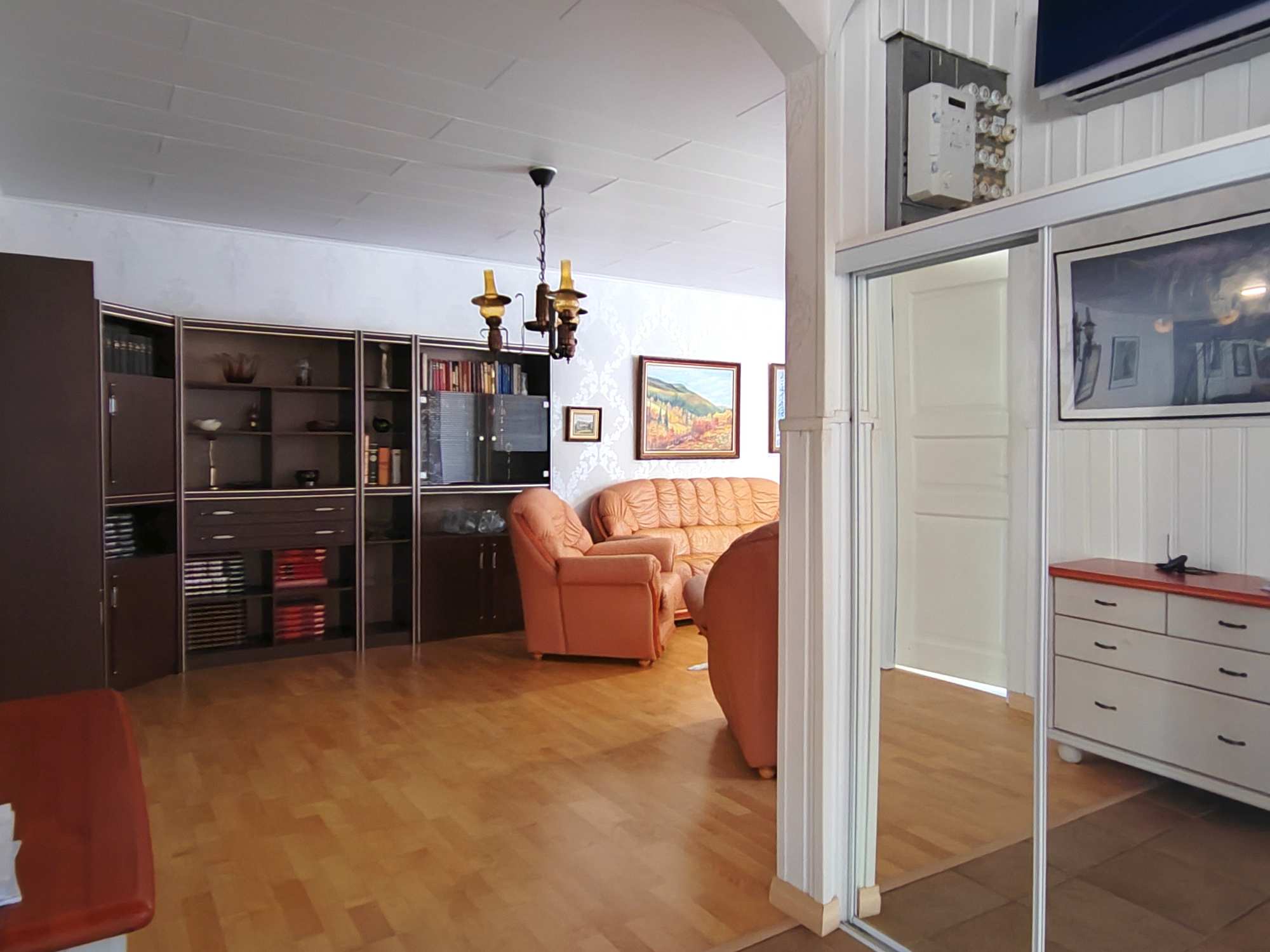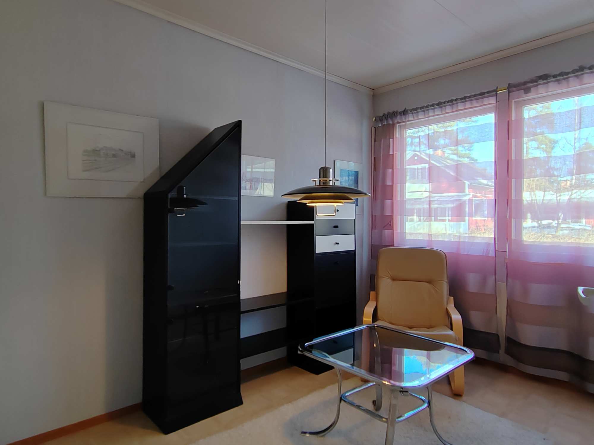 | Olohuoneen materiaalit | Lattia: Parketti Seinät: Tapetti |