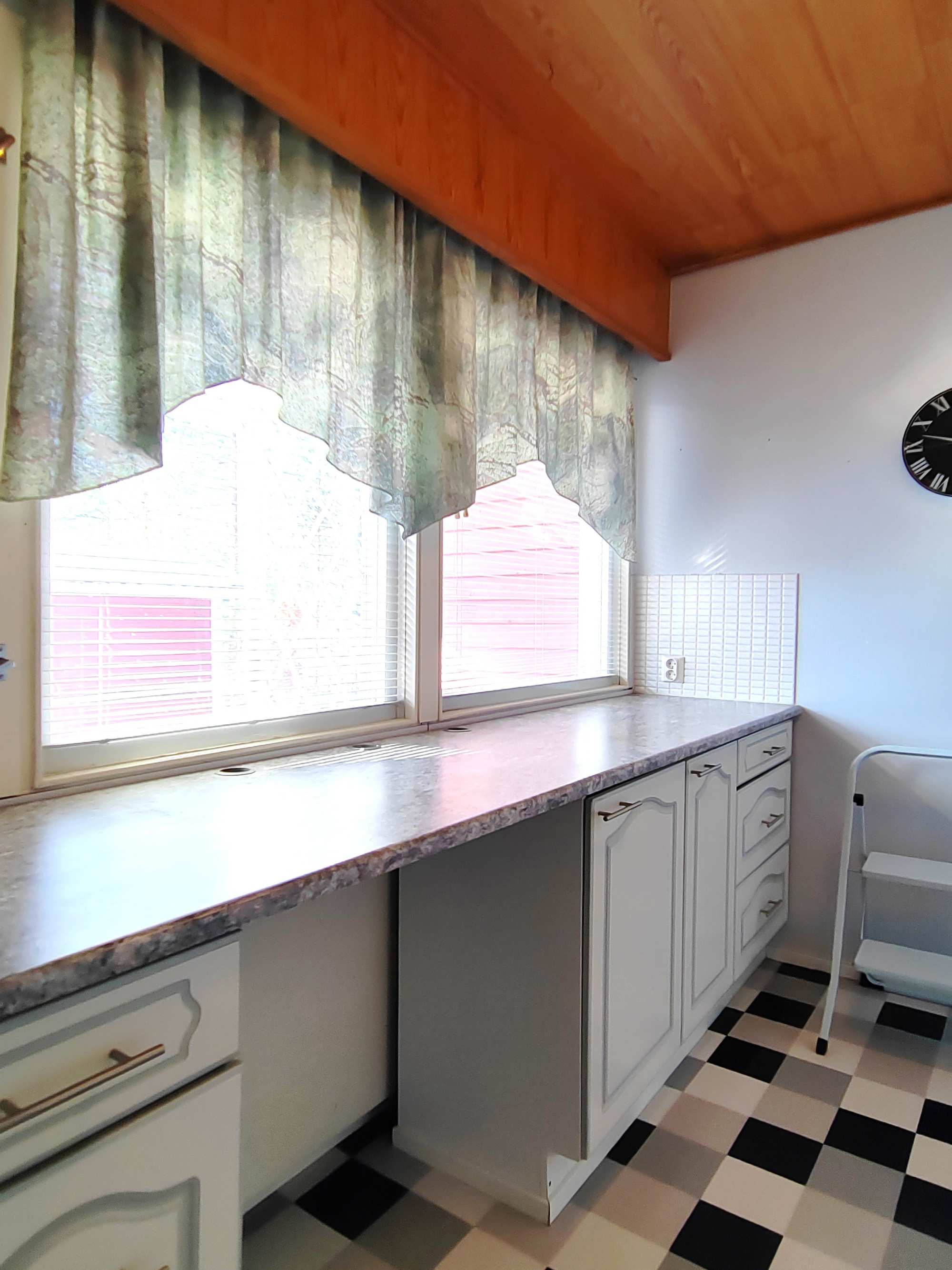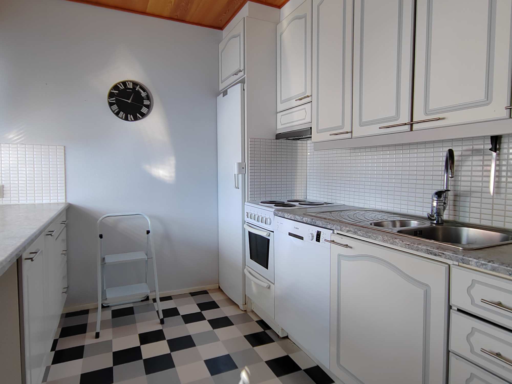 | Keittiön materiaalit | Lattia: Muovimatto Seinät: Maali |