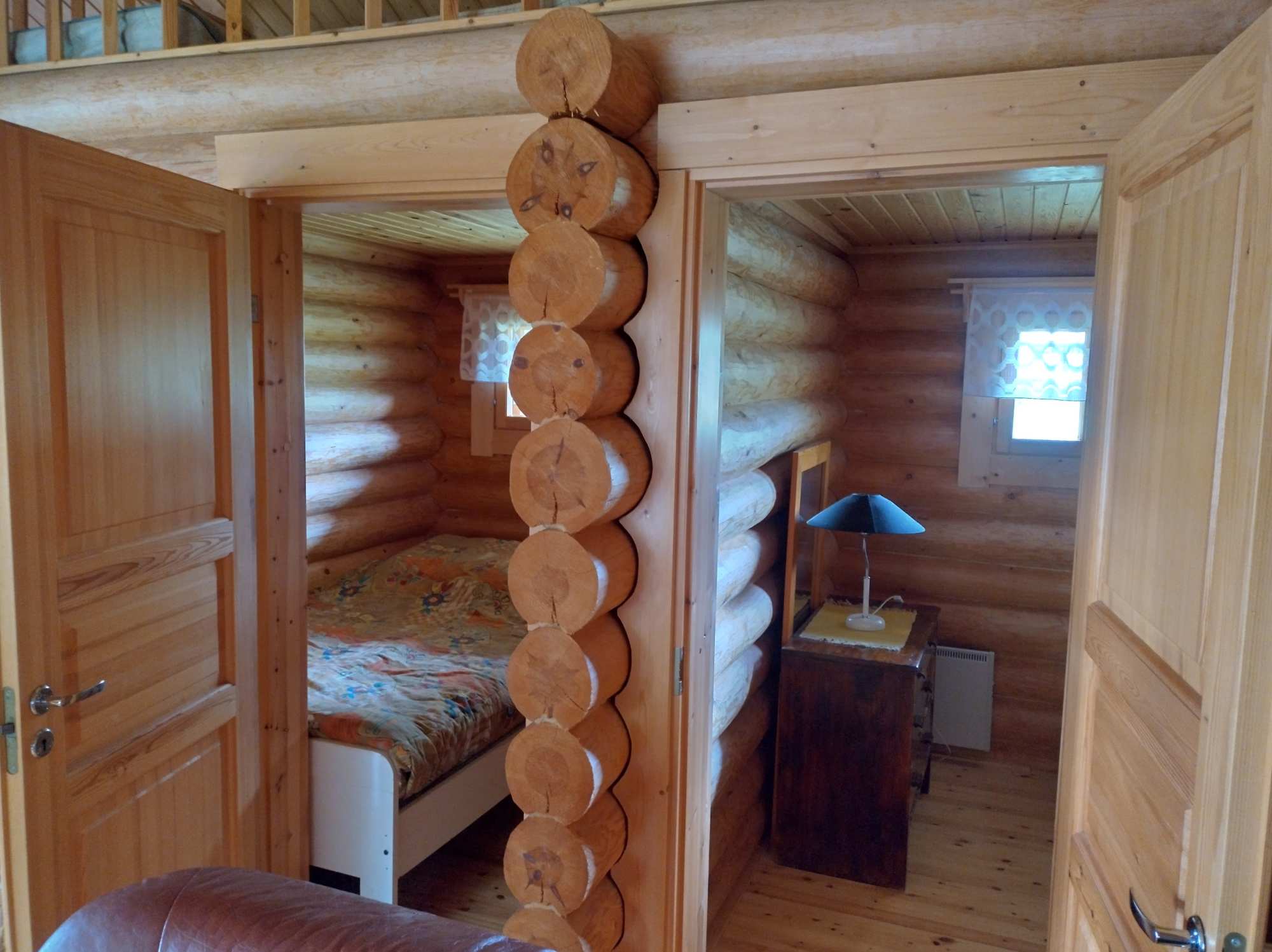 | Makuuhuoneen materiaalit | Lattia: Lauta Seinät: Hirsi |