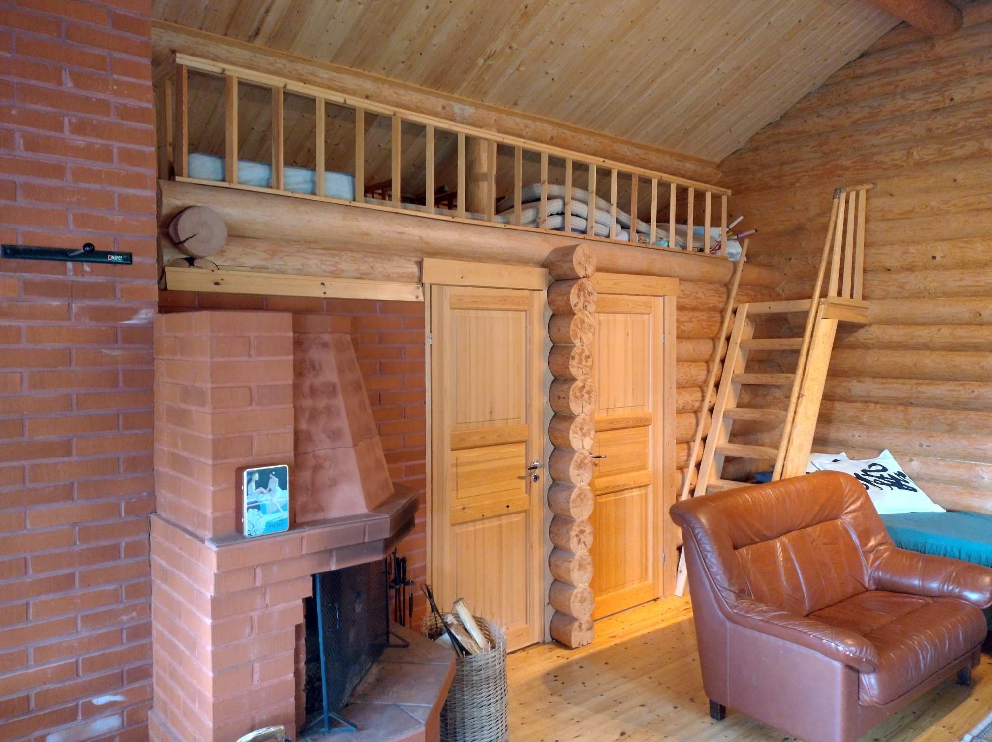 | Olohuoneen materiaalit | Lattia: Lauta Seinät: Hirsi |