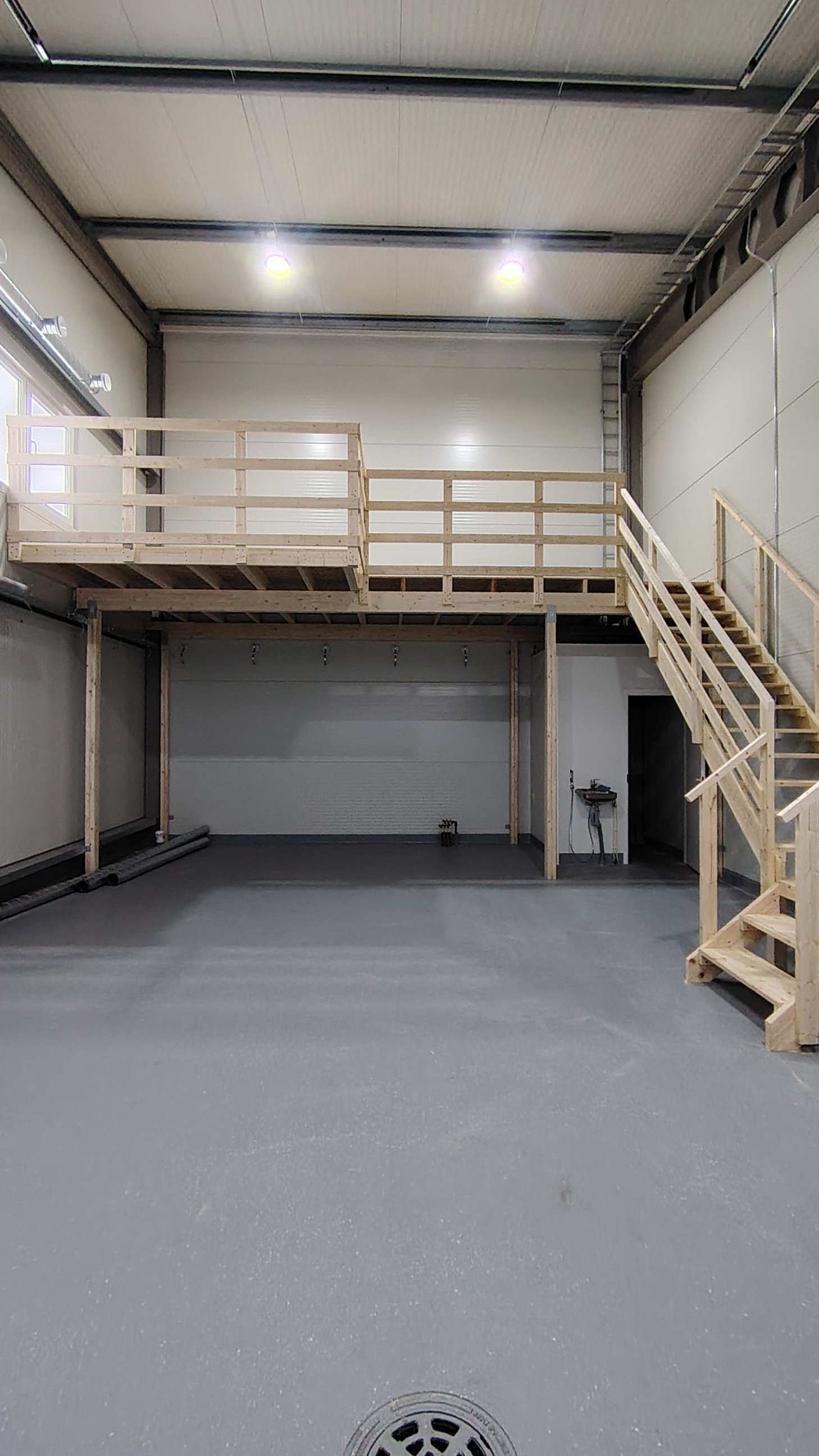 Halliyhtiö on valmistunut 11-2025, ja on vielä käyttämätön. Halliin on rakennettu iso parvi, jonne asennetaan keittiö. Alakerrassa on oma wc. Lattiassa epoxipinnoite ja hiekan ja öljynerotuskaivo. Ilmanvaihto on huonekohtainen. Nosto-ovi 6m, joka toimii sähköllä. Vapaa sisäkorkeus 6 m.