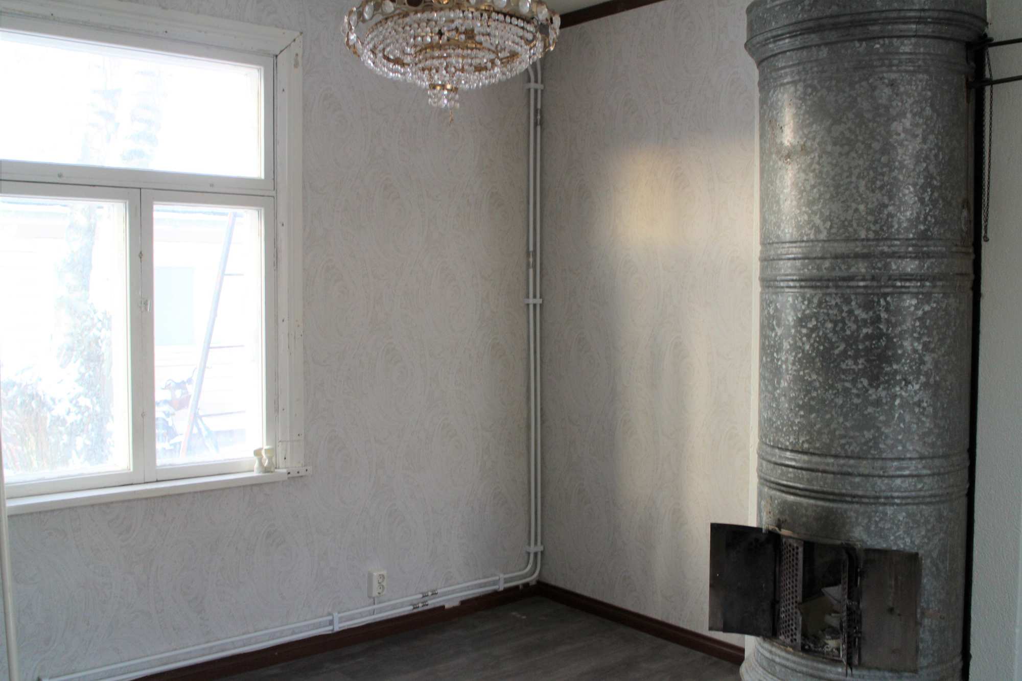 | Olohuoneen materiaalit | Lattia: Laminaatti Seinät: Tapetti ja maali |